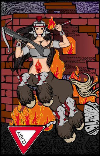 My second and final entry is perhaps one of my most complete works so far, ever since I started using the Hero Machine program. Again I decided to do something quite different by creating an intense battle scene, with the classic centaur bowman as the main protagonist: