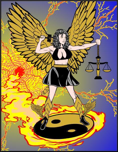 Kaylin88100 had two entries this week I wanted to highlight. The first is simply titled "Blue Libra" and I think has a lot going for it, from the contrast of the warm-toned scales with the cool-toned surrounding elements, to the great use of the seated figure, to the subtle touches of theme and shadow.