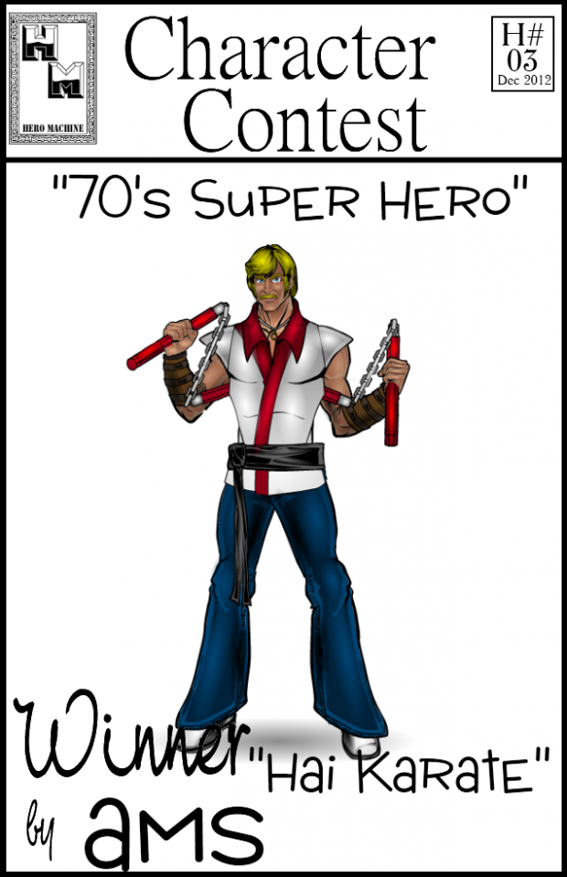 Ultimately, we picked ams' "Hai Karate." This character pretty much screams 70's because, let's face it, who didn't have/want a set of nunchucks? Congratulations ams, and to everyone else, keep the characters coming.