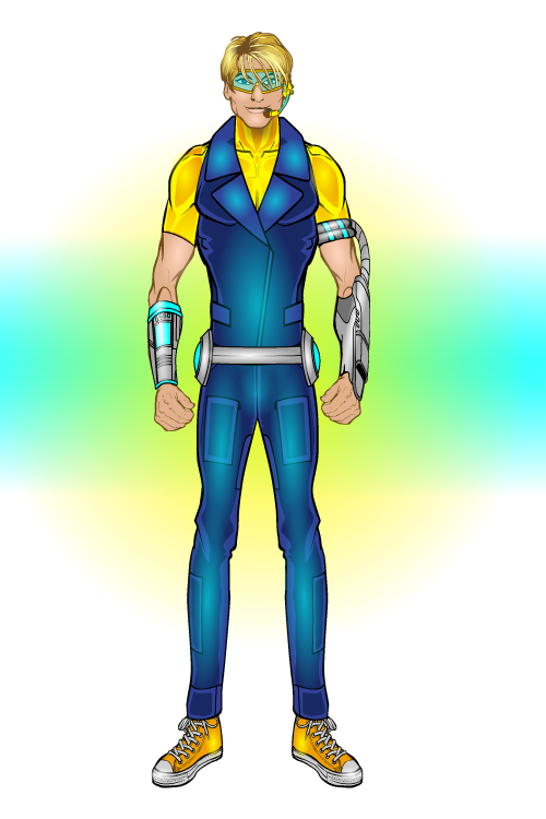 An avid gamer G (as he prefers to be called) has the ability to absorb the powers of others he is in close proximity with. He does rarely however have any level of control over them...yet. He uses his gaming gauntlets to "power up" when needed. His belt affords him the ability to fly.