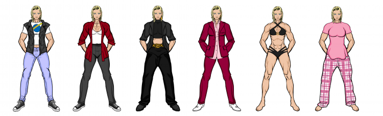 So, I’ve been on a bit of a Golden Guardian (who you can see on the last page) kick, so I decided to go and do a few alternate outfits for her civilian identity, Isabella Collins. As we’ve already had her superhero costume and a workout outfit, I thought we’d go with a couple of casual ones, a smart outfit and then beachwear and pyjamas, because why not.