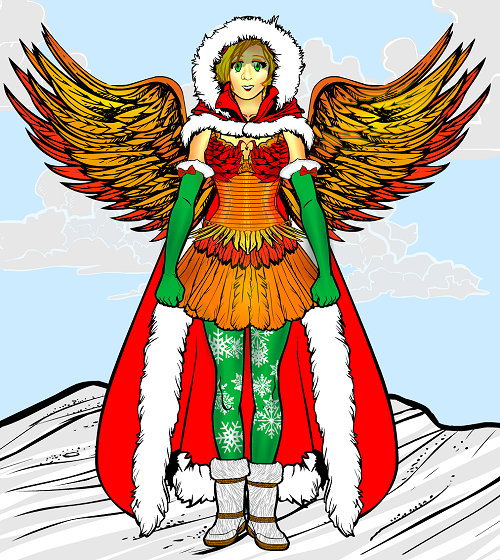 - One of my characters (Phoenix, shown in original outfit here) dressed up for Christmas
