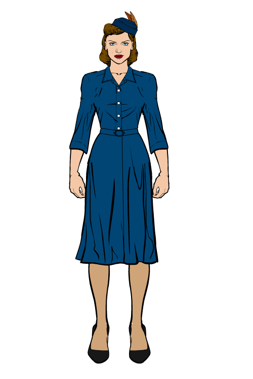 Putting Vivian’s dress together inspired me, and I decided to try my hand at creating some more 40s-style clothing (and hair. I just used one of the pre-drawn faces though)