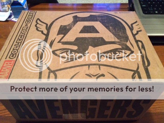 Now, the box I ordered is the Avengers box, its themed around the Avengers: Age of Ultron movie, I ordered it on January 6 2016 and received it today, not bad.The box came in good condition a slight blemish on the bottom but considering it shipped from Chicago all the way to British Columbia, Canada in good condition make me happy.