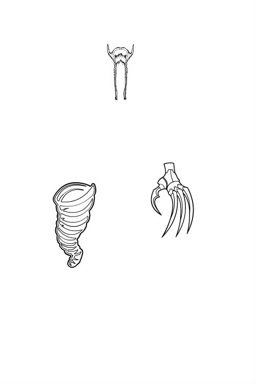 The boar heads are on the five soldiers, the eyes are used for the face on the weapon, and the tongue is used for the road.