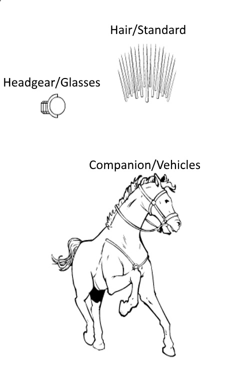 I used the glasses for his eyes, I use the standard shoulder piece for the top part of his belt, and the hair I used for one of the scalps on the wall.