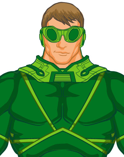 Xander is the team’s often reluctant leader. He hates the responsibility of ordering his friends into harm’s way, but they have accepted them as the head of the group. His suit allows him to adhere to any surface, utilizing gravitational and magnetic manipulation. He also wears a special visor that allows him to see in all 360 degrees around him at once.