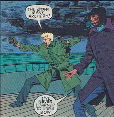 From the pages of āThe Butcherā No. 4 (Ā©1990, Mike Baron and Shea Anton Pensa), we learn that all characters in comic books must scream all dialog at each other, whether that be while flying a plane ...