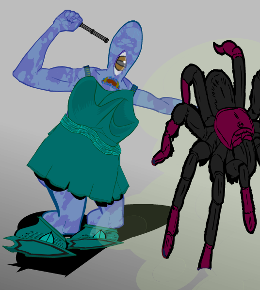 Herr DParticipantThe character of Mirage, by CDC std, was a nightmare projector. Spiders are a common phobia, and she was humanoid but alien. I figure occasionally she bashes somebody with a club right through what they see.