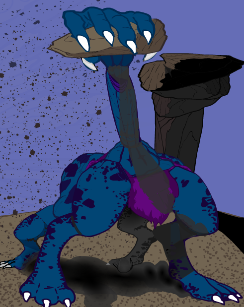 Herr DParticipantCrikes are blind, blue, mostly reptilian, and completely mean. At about two metric tons each, they can run (stampede) almost as fast in any direction. They do not bother to turn most of the time. They just change course. Their dominant limb is their upper appendage. It will grasp any hard object firmly with its two thumblike digits and use it to smash anything it finds. It will then squat upon it and taste it if it is hungry. It is omnivorous and has a surprisingly simple digestive system. Rather than an alimentary canal, it has a system of envelop, absorb, and release. One orifice, rapid transfer. With a high resistance to poison and disease, it doesn’t have a care in the world except for smashing more of whatever it finds.