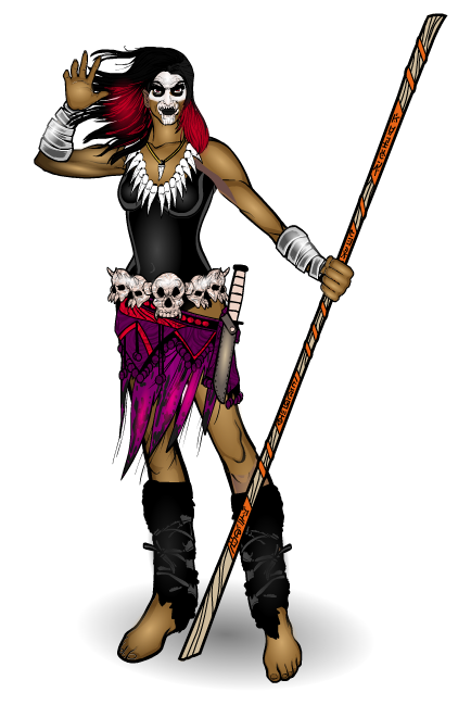 Kaylin88100ParticipantHere's my take on Zydeco, with some patterns on her skin, which could be either tattooed, or painted in blood. You decide. Anyway, here she is: