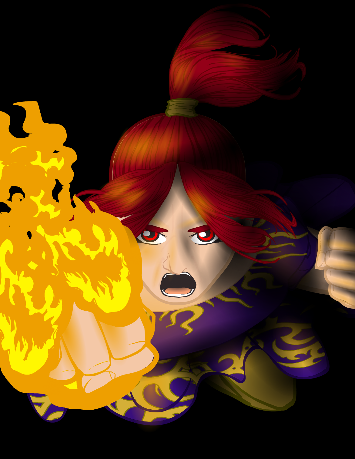 Powers/Skills: Melee to medium range fire magic; very skilled in hand-to-hand; above average resilence to physical damage