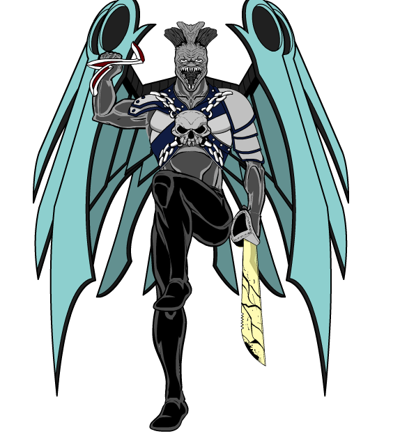 BLACK HAWK – He possesses biomechanic wings, hollow airfilled bones like a bird, and night vision. He is a trained Navy Seal and member of the F.L.A.G.W.A.T.C.H. Team “Shadow Ops”.