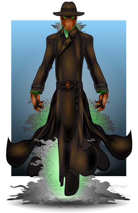But anyway, have to point out the excellent use of colour (orange and brown with green, giving off a very creepy vibe), the superb shading especially on the mask, which just exudes menace, and the masking used to blend the bottom of the coat to the cape used to create the blown effect. Brilliant work.