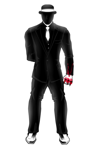 In this, he found a means to salvation; using it to buy an assortment of identical bullet-proof suits with spiked gloves, he became the faceless Stranger. With his rich suit contrasting with his own savagery, he is a metaphor for his own view of mankind; a wolf with a crown.