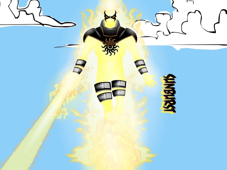 Here is a character for our ‘potential’ superhero game. He is made of solar energy which produces some fire as well. This was my first attempt to make fire. I have a ways to go to get better with it as I have seen some really good fire effects on here from other artists.
