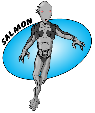 The bizarre Atlantean mutant named Sal Monn (who the humans refer to as Salmon after a miscommunication) thinks of himself as a great villain. A would be world conqueror who is on the cusp of domination.