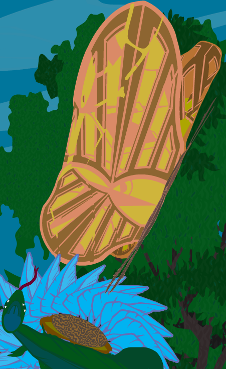 feather is lizard body and head, petals, butterfly body