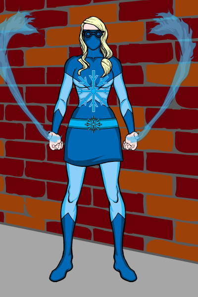Snowstorm: I don’t have a civilian name for her yet (any suggestions), but I do have a  backstory for her. She was also a college student (Captain Blaze’s best friend, in fact). She got her powers when, during a winter break, she visited her grandparents and, while outside, was fairly close to the crash site of an alien spaceship and was knocked out. When she regained consciousness, she had ice and snow related powers.