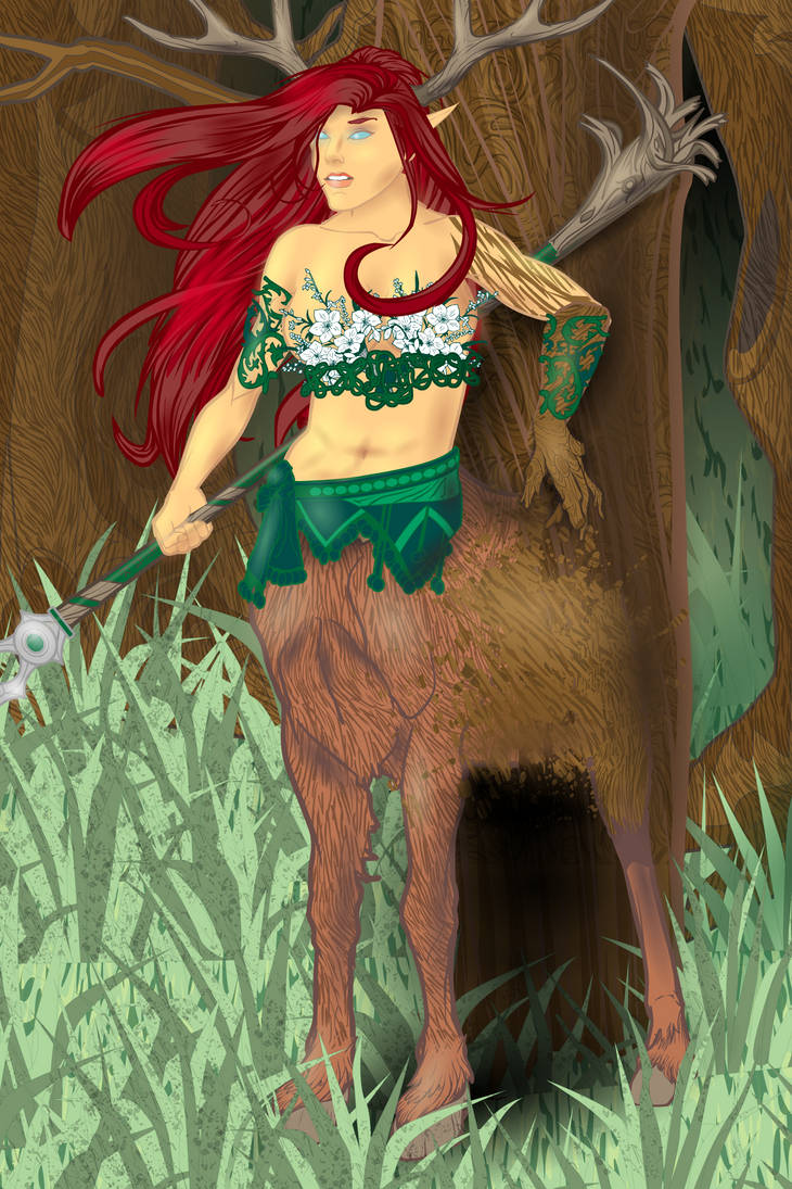 Another redux of my 5th edition cervitaur druid, Elsapeth. I fused in my dryad version of her by having her step out of a tree. I’m still slowly tweaking the effect, but I do think that his is my best attempt so far. Other than that there were just some shading and color adjustments.