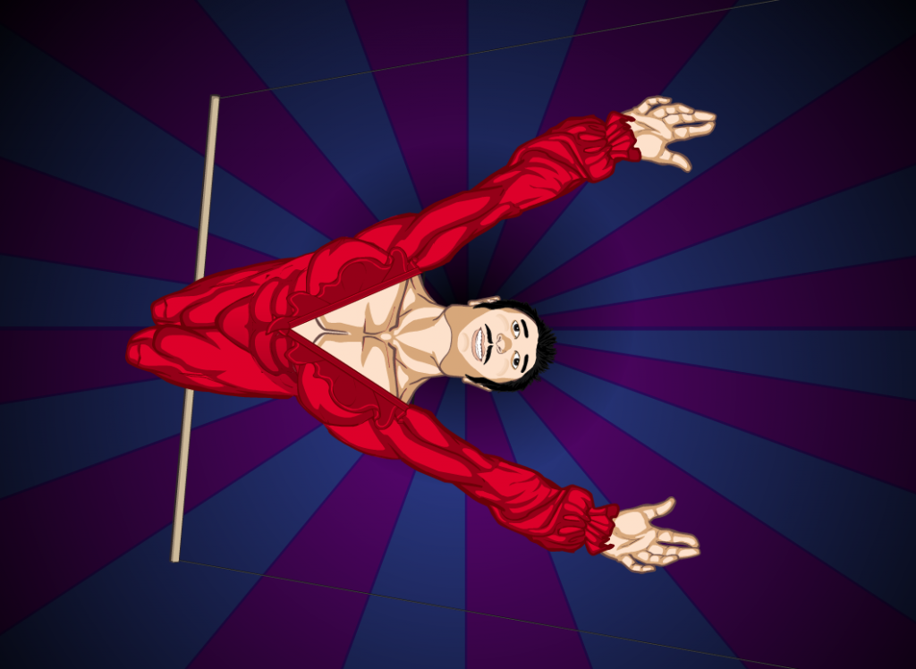 [/quote]^ Yeah. If he was swinging all out stretched like that the cables would follow his line of action. Just switch em to the other side of the bar, and it should be all good. Awesome job on the pose though. Very nice!