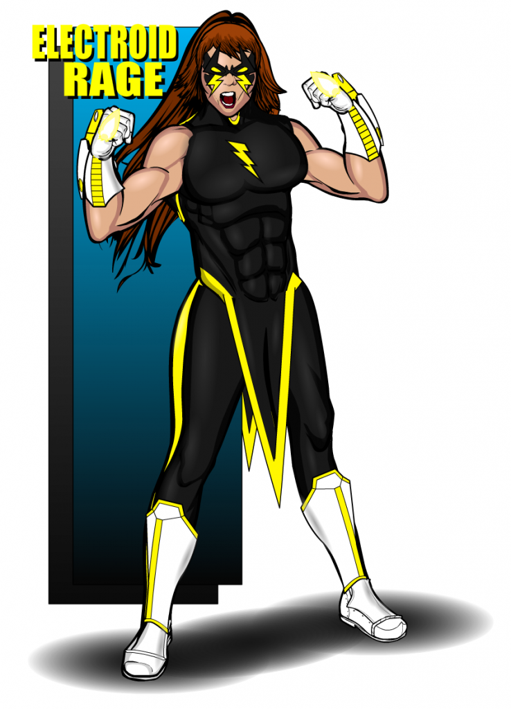 Even more unfortunately for Whitney, one of her earliest encounters with a masked hero was with the wise-cracking Glitch who referred to her as “Electroid Rage”. The encounter was caught on camera by a civilian nearby and the footage soon started doing the rounds of various media outlets, many of whom ran with the “Electroid Rage” name, much to the annoyance of Whitney Flores.