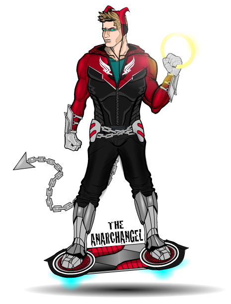 I admit, I had zero intention of using “The Anarchangel” as a character ever again and this started out as little more than an attempt to make a hoverboard. I needed someone to stick on top of it to show what the hell it actually was and so, rather than go to the trouble of making an entirely new character, I stuck the superhero version of myself on there and made a few improvements.
