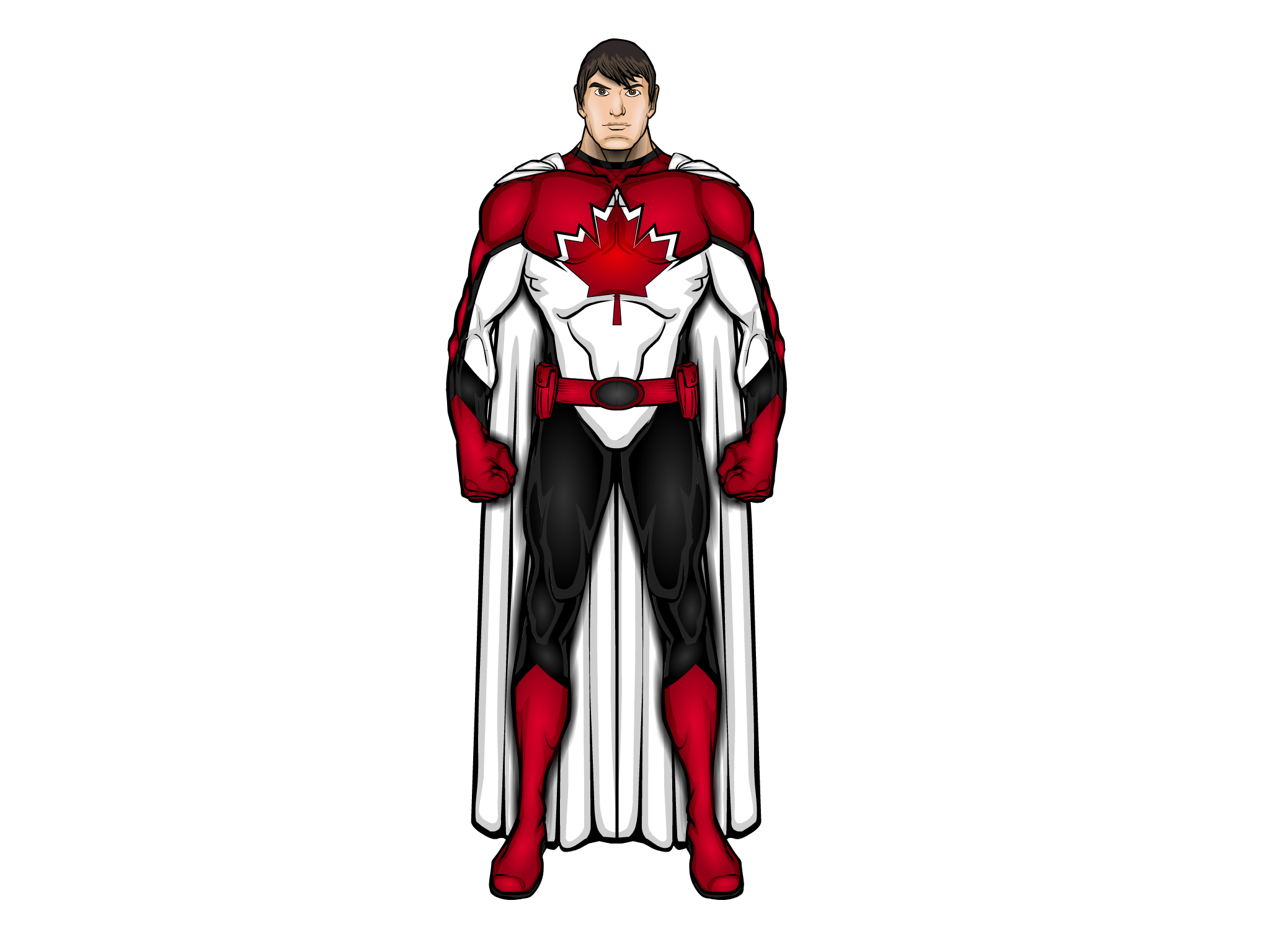 @Vampyrist glad you weighed in as well. I like what you’ve done with this. I like the shield with the maple leaf int he crest and with red as being the dominant colour. I love the modernized costume and the boots. The mask looks way better than the one I was working with as well and I like the addition of the maple leaf on the mask. Good stuff.Thanks again guys, that was a lot of fun and much appreciated! These revisions show me different methods and styles and designs that have me feeling inspired to try to incorporate into my future designs.