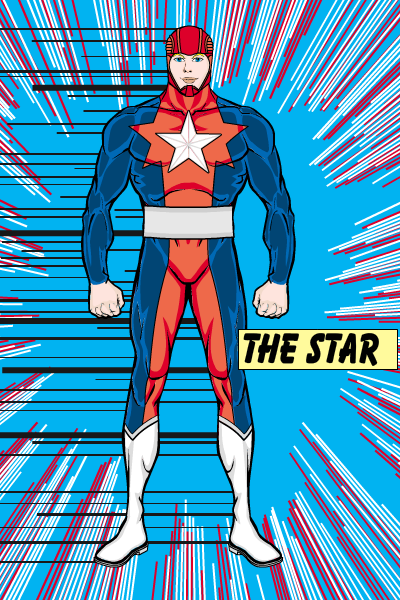 G. W.ParticipantAnd rounding out the original six All-Stars is the Star: James Solus was an ordinary man, until, one day, a meteorite crashed into him. He was presumed dead, until he emerged from the wreckage a few hours, dazed, but with not even a scratch on him. After that, he could fly, and had super strength, super speed, and super endurance. When the All-Stars found the fountain of youth in the sixties, only he and Father Time didn’t drink (Father Time didn’t drink because he knew that simply traveling through time meant he could show up at any time in the future anyway (though he later drank from the fountain when he was in his seventies) and the Star didn’t drink because he believed the fountain to be going against the natural way of life). He fought crime until the mid-nineties, when he decided to retire in Florida. He died in 2016 at the age of 94 due to old age.