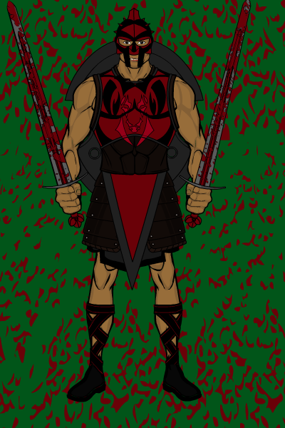 Ares, however, is different. He is immortal. For a few generations, Ares was an identity, passed on like the others. However, eventually, a particular incarnation of Ares stumbled upon the same stream that has given a few of my other characters immortality (the Isle of the Wolves, on which the stream is located, was actually created by an unknown Olympian thousands of years ago). He drank from it, and has been Ares for a very long time. Unlike his predecessors (closer to the Ares of mythology), this Ares is more or less a force of nature. He is pretty much pure rage, pure chaos, pure bloodlust, and pure destruction. He is not exactly evil, he simply must quench his thirst for blood, chaos, and destruction. Also included is an image of the front of his shield.