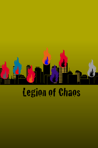 “SILENCE!” bellowed Seth. “Anyway, we need an identity. A name to strike fear into all who hear it.” Guanlong and Pinup rolled their eyes, but the rest were utterly captivated by his passion. “We are on a quest. A quest to spread our agenda of anarchy! Therefore we shall be the Legion of Chaos! As for how to market ourselves, I have an idea for an insignia. Our mission is against society. And what better symbol for society than the archetypical city? The city, full of corruption, crime, homelessness, hunger. All of society’s evils within a single urban sprawl. And what better symbol for chaos than fire? Not wishing to shape things, simple to destroy, to revert them to their natural shapes. Not a force of society, but one of nature. Nine flames, nine of us. Nine legionaries!”