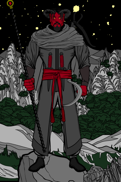 Anyway, this guy is a Tiefling Warlock named Fenriz. He made a contract with a devil in order to save his dying wife, and said devil later forced him to kill his wife. If he breaks the contract, then he will be stuck wandering the earth forever, killing everyone he comes into contact with, meaning he is completely stuck.