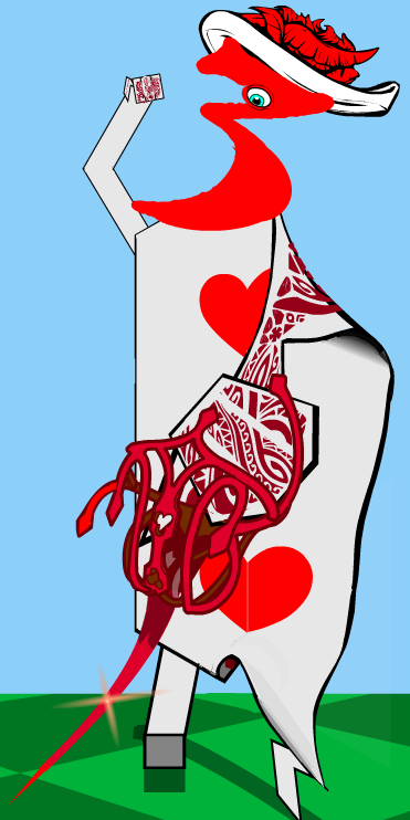 Herr DParticipantIn this set by Wonderland Games, the pieces are heavy gauge sheet metal painted with enamel. Each piece a work of art, they are handcrafted by the Mad Hatter, and then all mercury is removed. The pawns are the two through nine of hearts. Pictured here is the Red Queen Knight Pawn in its riposte pose.