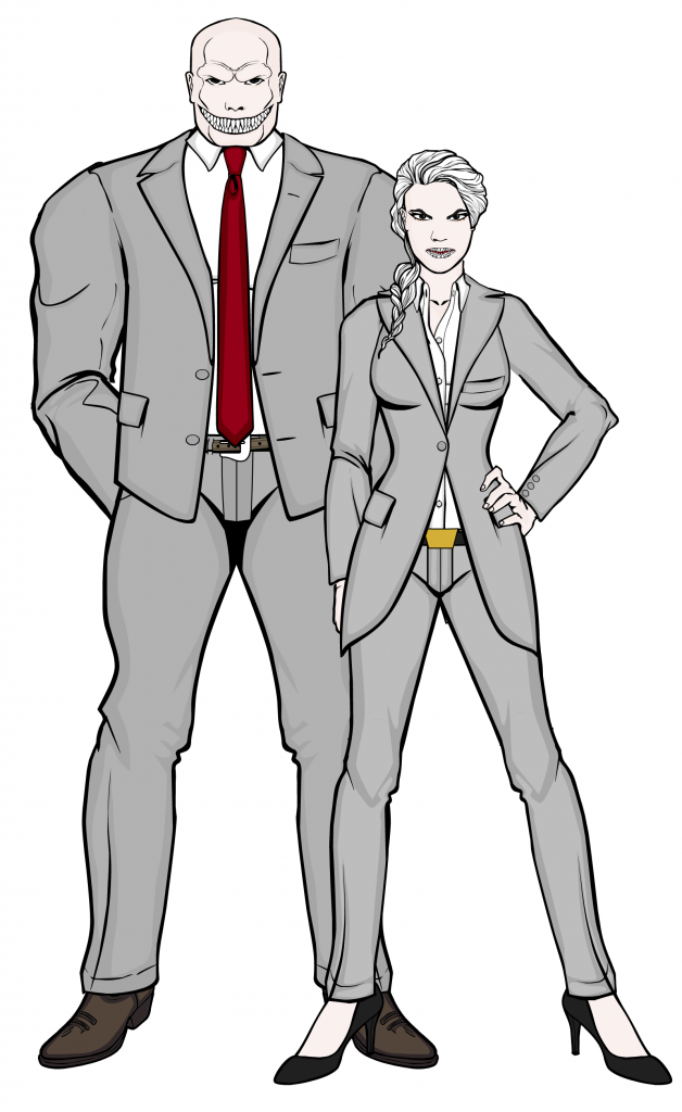 Powers: Enhanced Strength (Megalodon), Enhanced Speed/ Reflexes (Mako), Heightened Toughness and Stamina (Both), Sharpened/ Regrowing Teeth and Strengthed Jaws (Both)A pair of small time hoods, the Torriano siblings, Joseph and Joanna, where given an opportunity by Criminal Enterprises to join their Emerson opperations. The Torriano’s proved to be adept at their business, so they were given an up-grade alongside a promotion to running the Emerson opperation, just one step below the CE board and taking direct orders from the boss. As part of their up-grade, both were given a new variation on the CE Super Villain Serum, which gave them shark-like attributes as well as a strength/ speed boost. Joseph took on the name Megalodon, whilst Joanna became Mako. Their new powers immediately came in handy, as bosses of an entire branch of Criminal Enterprises they have been put in the firing line of a number of superheroes, everyone from Swan-Song to Red Kite is now looking to take them down.
