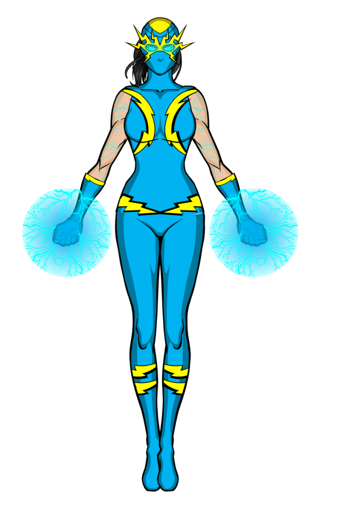 Powers: Electricity Manipulation, Minor Magnetic ManipulationJennifer James grew up idolising superheroes. She always wanted to be one, but having no powers of her own, she was a bit stuck. She tried learning how to fight and going down the non-powered vigilante route, but that just got her beat up. She tried sneaking into scientific research labs to see if she could get powers through a random accident, but that just got her arrested for trespassing. She even tried to follow superhero fights around hoping that somehow powers might just rub off on her or something. But none of it worked, until one day she was approached by some random stranger offering her the chance to gain powers. Sounds too good to be true right? Well, yes and no. She did get superpowers, but the guy turned out to be from Criminal Enterprises and Jennifer was forced to become a supervillain, not the hero she’d always wanted.. Now as the electricity manipulating Voltea, Jennifer regularly has to fight the very heroes that she idolised, including The Angels, Swan-Song and Red Kite.