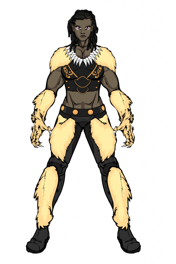Powers: Mystically Enhanced Strength, Endurance, Senses & Reflexes, slowed agingWhen Masimba Hunzvi (Black Lion) declared a blood feud against Chipungu Tshuma (Bateleur), not only did he force her to flee for her life, he entered the entire country of Nguvu into a civil war. Nguvu is a highly advance but highly secretive country ruled by a council of tribal leaders and protected by each tribes guardian, named after and empowered by that tribes associated animal. But when Hunzvi attacked Tshuma, he drew his tribe into a conflict with hers, setting off a powder keg of tensions that had been controlled for decades. The conflict was short but bloody, with the council of leaders gaining back control. Due to his role in the beginnings of the conflict and his actions during it, Hunzvi was branded a war criminal and sentanced to death, but he escaped before his sentance could be carried out. By tribal law, the guardian must hunt down any fugative criminals of their tribe, leaving the Lion tribe no choice but to appoint a new guardian, Oni Opeyemi, and set her to hunt down her predecessor and bring him back to Nguvu, dead or alive.