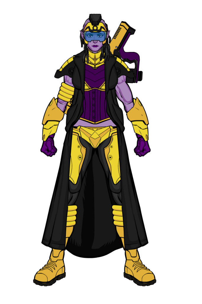 JR19759KeymasterRandom stopgap thing. Alien soldier girl, no backstory atm, would probably be something to do with Galactic Guard if there was.