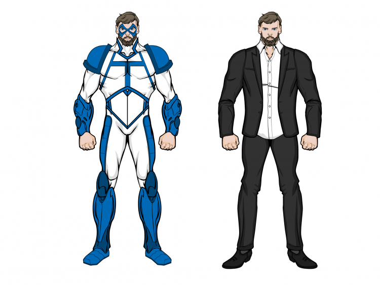One of a pair of superpowered twins born to high priced attorney Laurence Walker, Lance is the younger of the two by about half an hour, something his sister Leigh never lets him forget and will often tease him about. More straightlaced and serious than his relaxed and cheerful sibling, Lance ended up following his sister into the world of superheroics out of fear for her going too far and needing someone to be the voice of reason. Lance definately takes his heroic activities very seriously, he sees them as a means to an end and a good way to ensure that justice is done if it can’t be dealt in his day job as an attorney. Unlike his sister, Lance joined his fathers law firm straight out of university and has worked his way up to being the firms star lawyer, having won numerous high profile cases. He does sometimes feel guilty about some of the clients the firm takes on, he has had to defend some pretty unsavoury characters before simply because they can afford to pay him, but he is more pragmatic than his idealistic sister and believes that justice will always be served in the end, whether in the court or not. His biggest fear is that his dad will find out about the twins vigilanteism, of which he would most certainly disapprove.