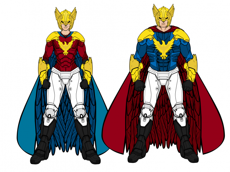 So, these two. Around 2 weeks ago, I posted on my Deviantart page that I was redesigning King Hawk and Queen Eagle and wanted suggestions on what to change their names to (as those original names are objectively crap), and I got a few suggestions, but it was AMS who put me on the path that I eventually went down (although I went with the name of an eagle + another different genus of raptor rather than hawks as he suggested). Now I designed Harrier (formerly King Hawk) first and went with a design inspired by my character Condor from a few years ago. Then I went a gave him the colours of the last redesign I done and it came out as Bird-Themed Uber American Patriot.Character, which wasn’t what I’d intended and super doesn’t fit the character. I messed around with a few variants, including ones based on the plumage of birds of prey, but nothing really worked, so I ended up going back and just running with the original colour-scheme with some minor changes (most majorly, changing the legs to be white instead of black, to fit in with Harpy’s design). Both colour-schemes are still a little “America Bird”esque, but what can you do?One thing I will say is that I found inspiration for a pretty neat villain design whilst trying to come up with new names for these guys, so you all have that no look forward to in the not-so-distant future.