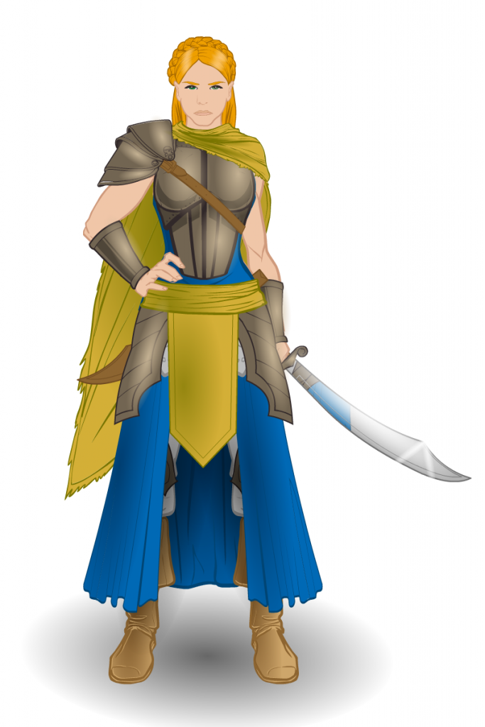 I will admit, I liked Abigaila’s previous design, but I felt like the posed picture I did of her, with her throwing a punch towards the camera, was a little out of character for her. Also, I wanted to practice shading with a dark-colored background some more 🙂