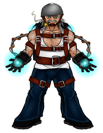 livewyre1014ParticipantWorking on a new villain squad…kinda in the vein of DC’s Suicide Squad or Marvel’s Thunderbolts. Villains all, who have been forced into service for missions both secret and incredibly dangerous. I’m calling them “the Sentence”…5 of the most dangerous and lethal people on the planet. This is their leader in the field…Virgil, known as “the Chair”. Virgil is a walking super conductor, able to control electricity, but not able to generate it. The pack he where’s on his back is a compact, high-capacity battery linked to two regulators on his gloves which helps him focus the electrical current he can run through his body. Although he stands at only 4’10, he is one of the most ruthless, brilliant, and dangerous people on the planet. The only person he cares about is a younger, mentally handicapped brother named Zeke, who lives in a very expensive and well run assisted living home in their home state of Florida. As long as the government takes care of Zeke and lets Virgil visit him from time to time, he will plan the missions and lead “the Sentence” in the field. I give you, Virgil “the Chair” Spencer!!!