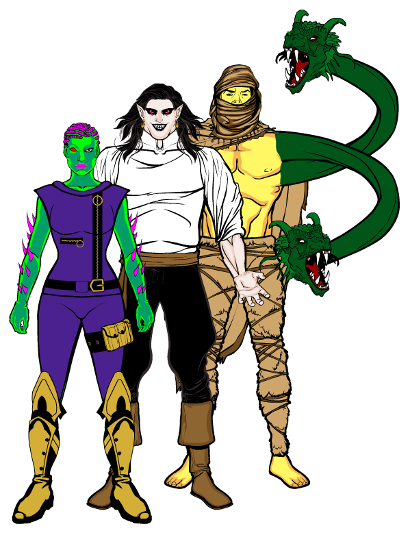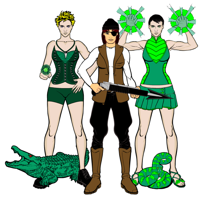Cocco (left), Martha (center), Verdinosa (right) were the Whaler Girls and the fought alongside League MMV and Neighborhood Watch against Oldube Scythe and the dark forces of The Shadows of Onidores.