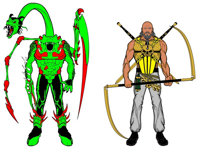 In the heat of battle and rage for past issues, the creatures Mist and Dragonsnake killed who once defeated them in a fight, the alien Grundin. They ran away and hid in the forest, among the Shadows of Onidores. In exchange for their protection, they became servants to its ruler, Oldube Scythe.