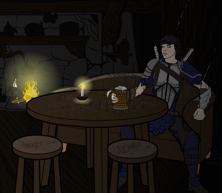 Originally called Faye Luckborn, she was born in a small farming village. The night of her birth was one of a strange celestial event, and it was thought that it would be lucky for Faye. That luck, as it were, extended to being the only person in her village to survive the ravages of the mad Azure dragon, Ikelt’Iaka. Badly wounded by the dragon, Faye, possessed by a manic determination, managed to slay the beast after climbing atop it and driving a spear through each eye and into the dragon’s brain. The dragon’s blood covered her and seeped into her wounds, mixing with her own blood and giving her a certain kinship with dragons and heightened strength and endurance. Scarred by the dragon’s claws and hardened by experience and great loss, Faye is a well-known mercenary in the realms. She is recognized by her dragonscale armor, her twin, dragonbone-hafted axes, and her less-than-sunny disposition. But few can match Faye in her craft, and those who doubt that, learn quickly.