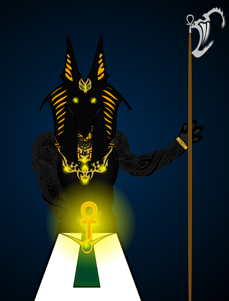 I did Anubis for this one. So many insignias, tattoos, background shapes (especially that circle)…. but I like how it came out.