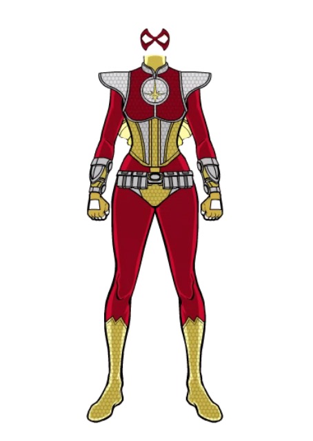 Costume: Shock-absorbing, bulletproof/stab-proof body armour, helmet, and gauntlets; form-fitting, fire/cold resistant bodysuit; fireproof cape and boots.