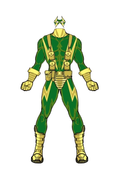 Gadgets/Tech: Costume and goggles are made from specially designed materials that can withstand the extreme forces that accompany super-speed; ‘V’ belt buckle can be detached and used as a grappling hook with thin, high-tensile cable contained within the belt itself, or detached completely and thrown as a weapon.