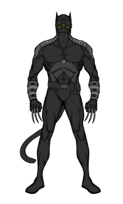 Gadgets/Tech: Utility belt contains tracking devices, electronic lock-picking/hacking tool, caltrops, and a length of rope. Mask has night-vision lenses. Known to occasionally use knockout gas canisters and/or EMP grenades.