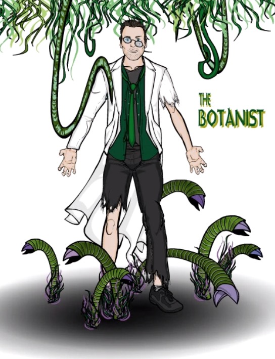 Habits/Quirks: A certifiable madman. Mild-mannered botanist and pharmaceutical chemist by day; mad scientist and supervillain by night. Having dedicated his life to the belief that communication between plants and humans could one day be possible, self-experimentation with various chemical compounds and and pheromones led to an explosive laboratory accident that resulted in his powers – with the unfortunate side effect of schizophrenia. Uncontrollable psychotic episodes cause him to commit crimes, using his above average intellect to great effect. Spends almost all of his free time creating new and unusual plants, the majority of which are deadly for one reason or another. Afraid of his own madness, he makes sure that his colleagues and neighbours are unaware of his alter-ego, and they know him simply as a quiet, nerdy, unremarkable individual.