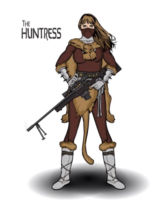 Habits/Quirks: A surprisingly mysterious individual, despite her no-nonsense, straightforward attitude. Little is known of her past before she became a well known figure in the South African criminal underworld. Unknown to most, she was raised by relatively rich parents of Dutch descent, and led a privileged life – developing passions for sport hunting and luxurious parties, and getting mixed up with some unsavoury characters. Gaining permanent superpowers with an prototype version of the serum later used by Alley Cat, she found that she fit into the criminal lifestyle well, hiring herself out as a ruthless and successful assassin and mercenary. She’s obsessed with adding famous heroes to her trophy list. Often incorporates her animal kills into her costumes.